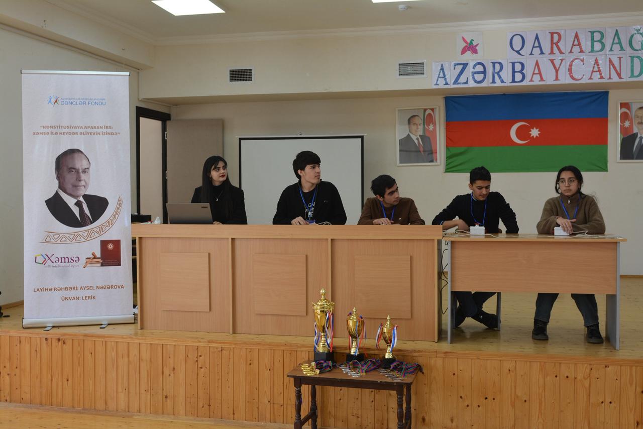 Azərbaycan Respublikası Gənclər Fondunun maliyyə dəstəyi ilə “Konstitusiyaya aparan irs: Xəmsə ilə Heydər Əliyevin izində” adlı layihə çərçivəsində gənclər üçün intellektual bilik yarışı təşkil olunaraq hüquqi biliklərin interaktiv və rəqabətə əsaslanan formatda aşılanmasına nail olunub.