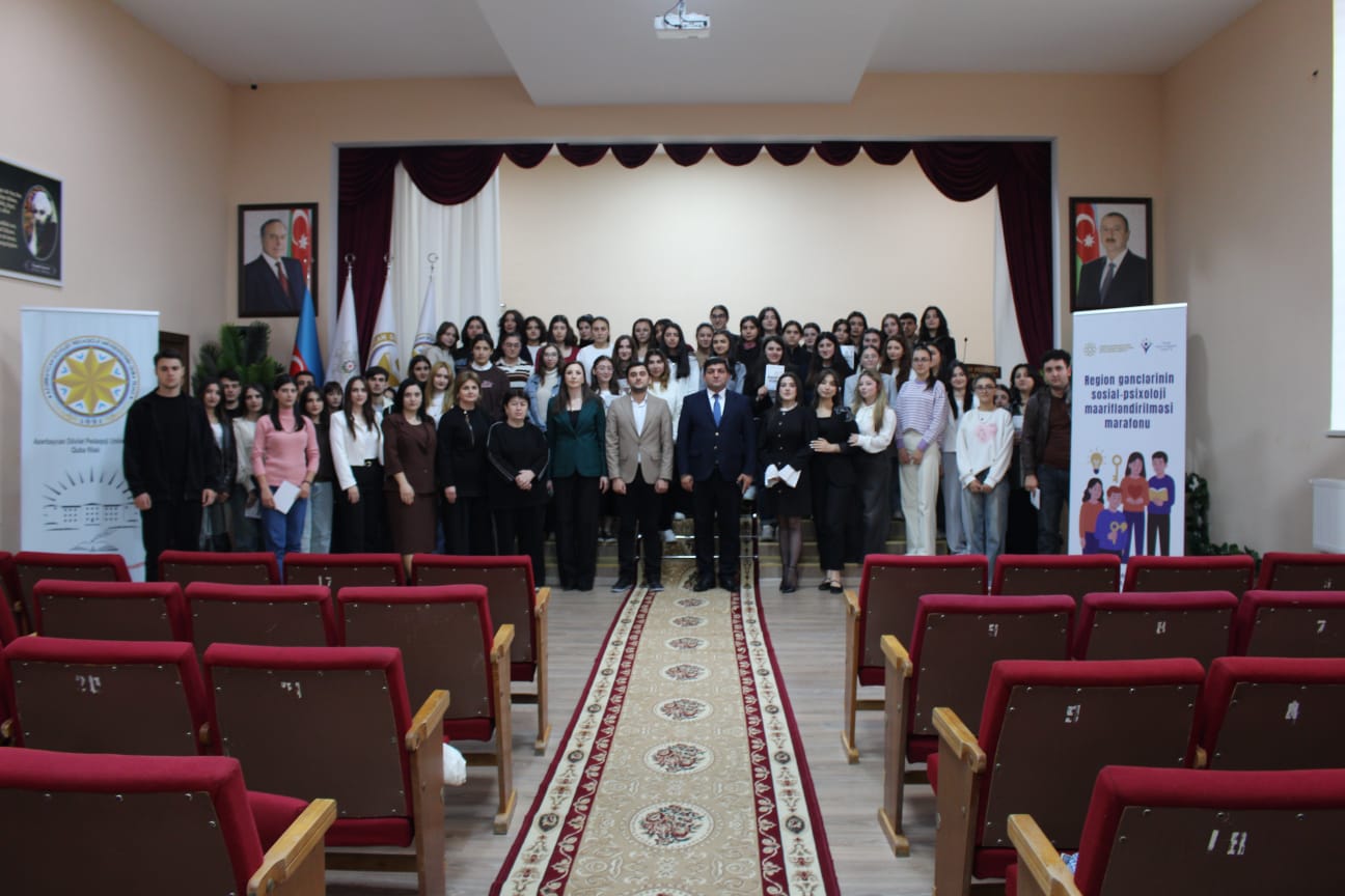 Azərbaycan Respublikasının Qeyri-Hökumət Təşkilatlarına Dövlət Dəstəyi Agentliyinin maliyyə dəstəyi və “Psixoloji Xidmət və Tədqiqatlar Mərkəzi” İctimai Birliyinin təşkilatçılığı ilə Quba şəhərində “Region gənclərinin sosial-psixoloji maarifləndirilməsi marafonu” adlı layihə çərçivəsində tədbir keçirilib.